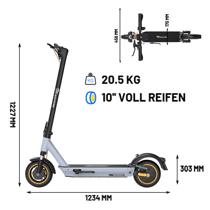 Willkommen in der Welt des EVERCROSS EV10K MAX! Dieser Elektroroller kombiniert hohe Leistung, Komfort und Sicherheit und bietet Ihnen ein unvergleichliches Fahrerlebnis.
